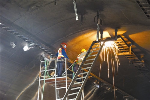 圖為施工現(xiàn)場(chǎng),工人在隧道內(nèi)作業(yè)