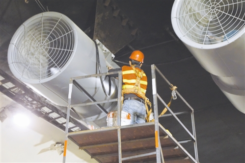 11月1日是隧道整治施工的第四天,工地現(xiàn)場(chǎng),多個(gè)作業(yè)面同時(shí)鋪開,施工人員三五個(gè)一組共近60來(lái)人,有序分工,緊鑼密鼓地開展各項(xiàng)作業(yè)。施工現(xiàn)場(chǎng),有的站在活動(dòng)腳手架上安裝燈具,有的在布管線、接線調(diào)試,有的在安裝風(fēng)機(jī)……一項(xiàng)工序銜接著另一項(xiàng)工序,各個(gè)工種環(huán)環(huán)相扣。截止當(dāng)晚10點(diǎn)30分,隧道內(nèi)燈具、風(fēng)機(jī)全部安裝完畢,黃土嶺隧道群整治已完成總工程量的60%。