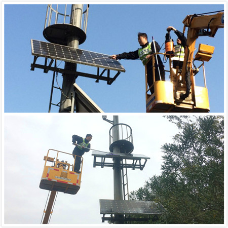 12月12日,集團(tuán)工程養(yǎng)護(hù)部機電設(shè)備維養(yǎng)中心主任助理葉俊及中心幾名隊員,站在凳高車上,頂著寒風(fēng),利用事先準(zhǔn)備的手動洗車水槍、拖布等清潔工具對公司路面攝像頭太陽能板進(jìn)行一一清洗,使原先布滿污垢的面板立刻變得光亮如新。 集團(tuán)沿線共有40多塊太陽能板。近日,維養(yǎng)中心在設(shè)備巡檢中發(fā)現(xiàn)路面攝像頭太陽能板普遍存在充電電流不足的現(xiàn)象,致使電瓶無法完全充電,一到陰雨天氣或晚上就不能保障攝像頭正常運轉(zhuǎn)。這些太陽能板由于使用年限久(基本都在10年以上),部分面板晶片已出現(xiàn)老化破損,加上冬季日照時間短、強度低等自然因素影響,導(dǎo)致設(shè)備無法有效運轉(zhuǎn),但如果全部更換不僅成本高,而且費時又費力。