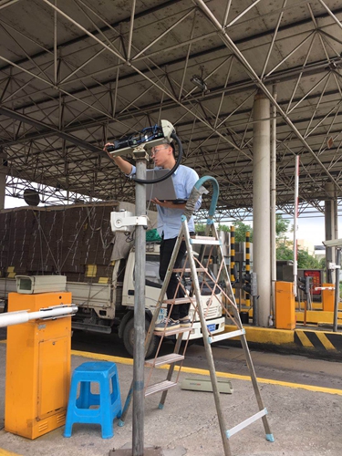 圖為工作人員在設(shè)置攝像頭各項(xiàng)參數(shù) 另外,細(xì)心的隊(duì)員們還發(fā)現(xiàn)不同機(jī)型抓拍機(jī)在夜間的抓拍率相差較大,便和廠家技術(shù)人員一起,利用筆記本在車道來回測試抓拍數(shù)據(jù),并根據(jù)數(shù)據(jù)設(shè)置不同的抓拍及補(bǔ)光參數(shù),提高了夜間車牌的整體抓拍率。最后,在抓拍穩(wěn)定性及可靠性方面,中心隊(duì)員在翻閱相關(guān)資料及咨詢技術(shù)公司后,及時(shí)升級并替換攝像頭的動態(tài)庫文件,有效保障了車牌抓拍成功率。