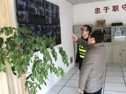 圖為考察小組在崗?fù)?nèi)現(xiàn)場(chǎng)觀看文明服務(wù)