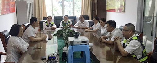 圖為公司副總經(jīng)理章海峰帶領(lǐng)相關(guān)人員趕往現(xiàn)場(chǎng)檢查分流備戰(zhàn)情況