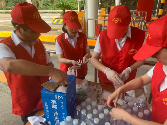 圖為志愿者在準(zhǔn)備防暑物品 “師傅,辛苦啦!這袋子里有礦泉水、風(fēng)油精、人丹一些防暑物品,您拿好,路上帶著以備不時之需!” “沒想到,你們收費站還有這個服務(wù),這次我要出趟遠門,說不定路上還真能用的上,謝謝呀!”一位接過禮品袋的老師傅連聲道謝。