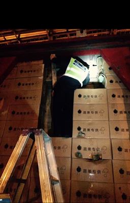 一張照片牽出一輛假冒“綠農(nóng)車” 3月1日凌晨,車號為滬DL1247的廂式大貨車因假冒綠農(nóng)車在臺州收費所被設(shè)卡攔截,司機因涉嫌詐騙被公安機關(guān)帶走調(diào)查。 這輛從溫州南入口、車門上印著“蔬果特快”軸限40噸的115型大貨車,在凌晨2:25分駛?cè)肱_州收費所,司機自稱運送蘋果。當檢查人員打開車廂后門,搬開疊放著兩層的蘋果箱后,發(fā)現(xiàn)廂體另有天地,一個用鐵條焊成的架子沿著廂壁固定在廂體內(nèi)部,架子上豎著兩大片木板,木板遮擋了廂體六分之五的面積,透過木板縫隙能看到里面一箱箱的貨物。檢查人員把手伸進包裝箱里,拆開一看,里面全是電動車的配件。