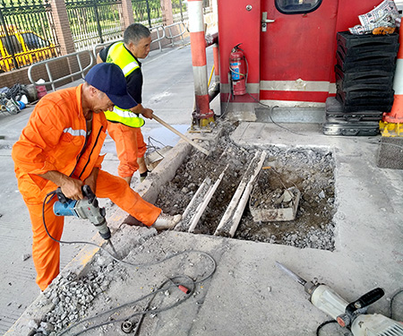 8月8日中午,省機(jī)電設(shè)計院施工人員率先對臺州收費(fèi)所一號車道進(jìn)行自助發(fā)卡機(jī)基礎(chǔ)施工工作。屆時,該所兩個進(jìn)口車道都將安裝自助發(fā)卡機(jī),整個工期預(yù)計需要一個月時間。