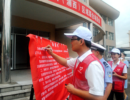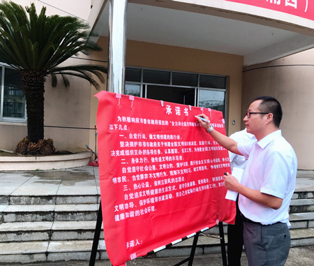 圖為公司副總經(jīng)理章海峰在承諾書上簽名 章海峰要求大家充分認(rèn)識創(chuàng)建全國文明城市的重要性,立足崗位,樹窗口形象,展行業(yè)新風(fēng),用自己的實際行動支持創(chuàng)建工作。此次創(chuàng)建工作,時間緊、任務(wù)重,需要全體人員迅速行動起來,從我做起,從細(xì)節(jié)做起,從點滴做起,逐層壓實責(zé)任,確保萬無一失。文明城市創(chuàng)建工作不僅僅是政府的事,更是全體市民的事,也直接體現(xiàn)了一個城市的幸福指數(shù),大家要以“一流的城市環(huán)境、一流的公共秩序,一流的服務(wù)水平、一流的精神面貌”迎接測評。