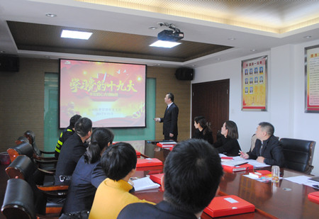 圖為學習十九大報告內(nèi)容現(xiàn)場 黨支部書記王小勇制作了學習十九大報告內(nèi)容的PPT,設框架、劃重點,以圖文并茂的形式,將學習十九大精神與日常工作緊密聯(lián)系起來,為更好地開展工作打下堅實的思想基礎。