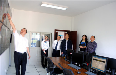 圖為檢查組在監(jiān)控室了解文明服務情況