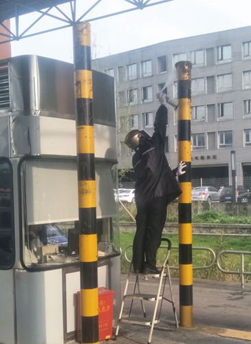 當班副班長何丹燕立即將車道內情況報告給所領導,副所長何先林聽聞后急急披上雨衣,戴上頭盔和手套,迅速趕到車道,經(jīng)過簡單防護的他用殺蟲劑噴射蜜蜂集聚的位置。與此同時,何丹燕疏導后方車輛從其他車道通行。