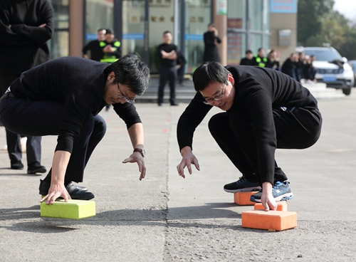 本次活動分團隊個人單項賽,團隊賽包括“二龍戲珠”“背靠背”“集體跳繩”“拔河”4個項目;個人單項“摸石過河”“夾乒乓球”“跳繩”“定點投籃”“俯臥撐”“仰臥起坐”6個項目組成。每個賽場氣氛活躍加油聲、喝彩聲此起彼伏其中拔河比賽最為熱鬧,參賽隊員個個緊握長繩,蓄勢待發(fā),隨著裁判的一聲哨響,他們“一二三”的口令聲中卯足勁、齊發(fā)力,場邊助威聲響成一片。“摸石過河”比賽中,身體的任何部位不得直接觸碰除河石之外的支撐物,該項目著重在手腳配合,“河中”巧妙移動石頭,直至到達終點。