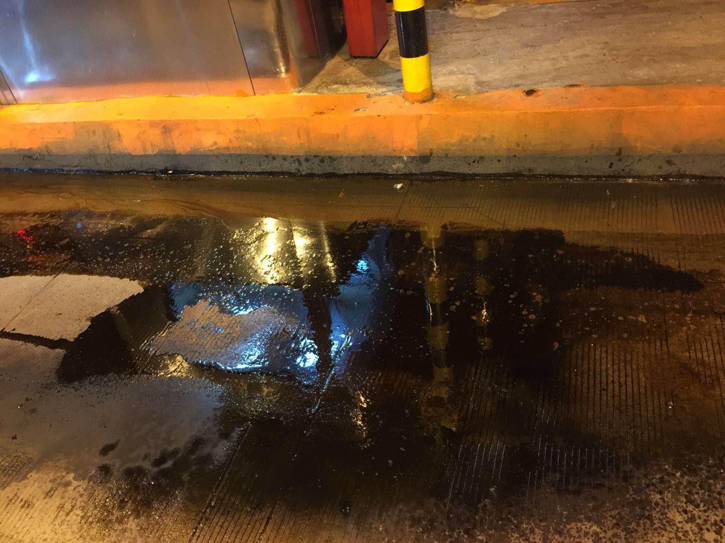 圖為車子漏的液壓油 據(jù)了解,該車從金華東入口,裝載的全是磚頭,重達56.24噸,超載7.24噸。所幸車子在下高速后出現(xiàn)問題,如果超負荷的載重加上高速行駛,途中突然停下將會造成嚴(yán)重后果。 在此,筆者提醒廣大貨車駕駛員:合法裝載,安全行駛。 楊雅芬