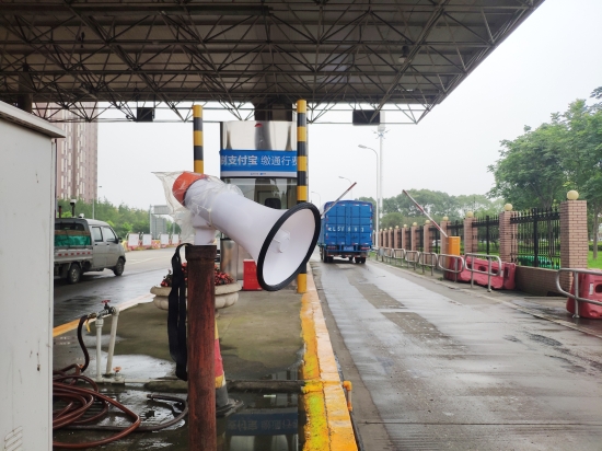 圖為入口處放置的語(yǔ)音警報(bào)小喇叭 在嚴(yán)把入口關(guān)中,該所要求入口必須有人員在崗,履行“一崗雙職”的重任,時(shí)刻關(guān)注入口情況,及時(shí)發(fā)現(xiàn)并勸阻違規(guī)車(chē)輛和人員的進(jìn)入。此外,入口顯眼處懸掛“請(qǐng)珍愛(ài)生命,禁止行人和非機(jī)動(dòng)車(chē)上高速”的警示標(biāo)語(yǔ)。入口處增添放置的管控小助手---語(yǔ)音警報(bào)器,循環(huán)播放普通話和方言警示標(biāo)語(yǔ):“行人、自行車(chē)、摩托車(chē)禁止上高速公路”。入口安全島頭和邊溝處放置水碼,防止行人、摩托車(chē)、電動(dòng)車(chē)和自行車(chē)從邊溝處和超寬車(chē)道進(jìn)入高速。而由維養(yǎng)中心人員在入口高處安裝的攝像裝置,只要行人、自行車(chē)等非機(jī)動(dòng)車(chē)輛出現(xiàn)在攝像范圍內(nèi),就會(huì)立刻傳來(lái)“警戒區(qū)域,請(qǐng)盡快離開(kāi)”的持續(xù)性警報(bào)聲。在人員的管控和設(shè)備的警示下,收費(fèi)所入口安全不斷地提升。