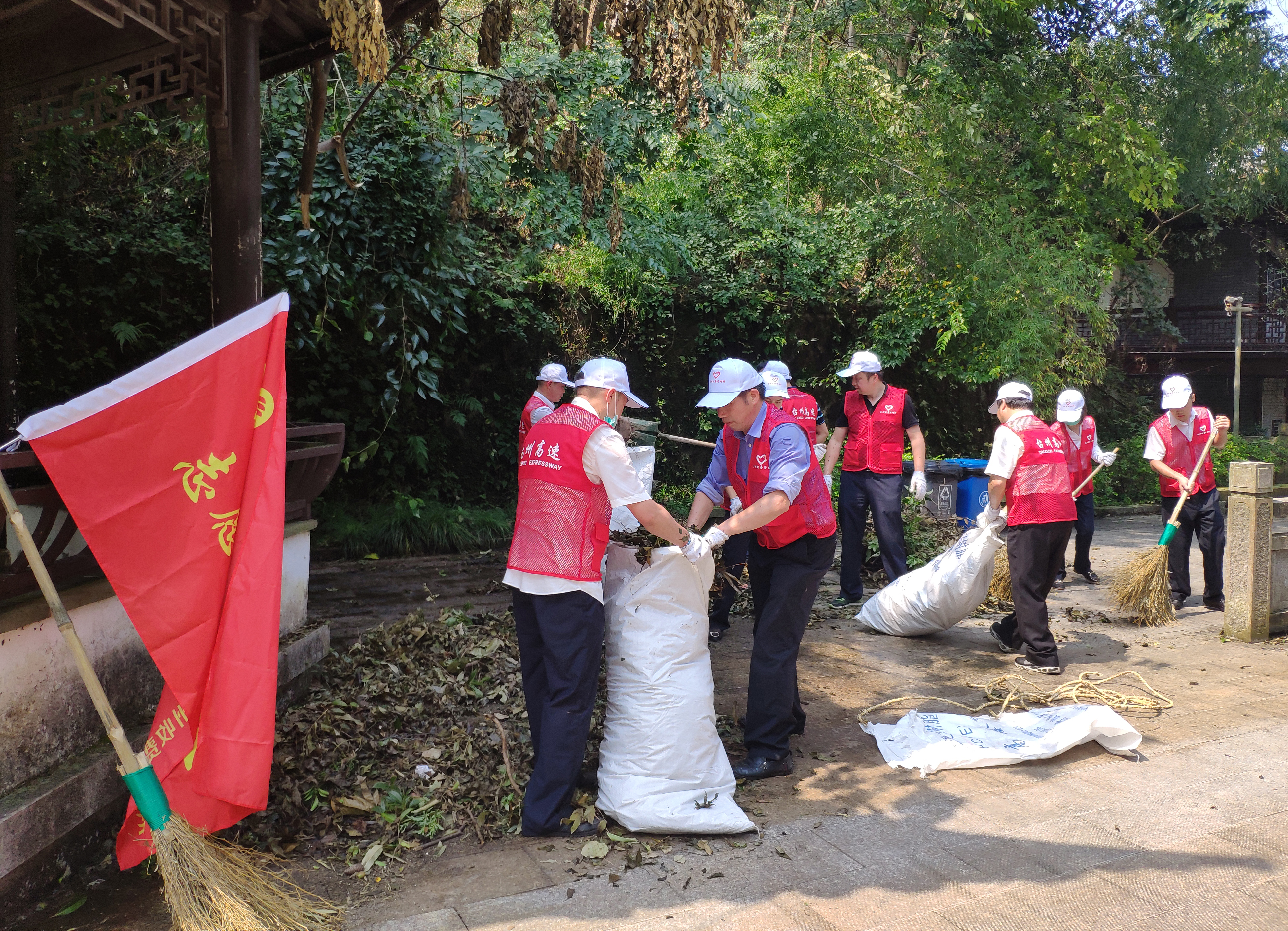 文明于心 回饋社會 臺州收費(fèi)所黨支部助力黃巖九峰公園垃圾清理 8月15日上午,臺州收費(fèi)所黨支部組織黨、團(tuán)員青年志愿者共15人,助力黃巖區(qū)九峰公園臺風(fēng)后清理工作。