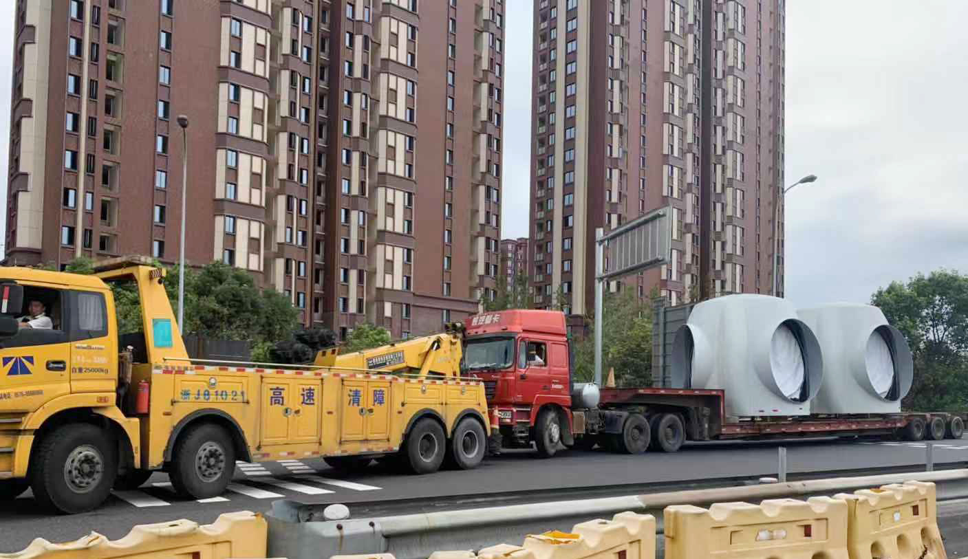 圖為被施救車(chē)拖出的超限車(chē) 接到電話的第一時(shí)間,當(dāng)班班長(zhǎng)上報(bào)所領(lǐng)導(dǎo),并丈量回復(fù)指揮中心出口超寬車(chē)道寬為4米,進(jìn)口超寬車(chē)道地面寬為4.8米。經(jīng)協(xié)調(diào),超限車(chē)輛從臺(tái)州收費(fèi)所入口車(chē)道下高速。副所長(zhǎng)和班長(zhǎng)隨即拆除內(nèi)廣場(chǎng)的中央隔離帶,以便車(chē)輛可以通行。11:50分,交警攔住寧向出囗車(chē),入口封閉。施救車(chē)拖著該車(chē)緩緩從入口車(chē)道開(kāi)出。 經(jīng)詢(xún)問(wèn)得知,該車(chē)辦理了超限運(yùn)輸車(chē)輛通行證,運(yùn)載大型輪轂從樂(lè)清上高速去內(nèi)蒙,結(jié)果行駛至臺(tái)州時(shí),車(chē)子出了故障。該車(chē)車(chē)重84噸,原本需要繳納通行費(fèi)695元,大件運(yùn)輸優(yōu)惠后僅需繳納395元。雖然車(chē)子壞了,但駕駛員依然向工作人員表示感謝,并感言合法裝載的好處,不然還要面臨處罰。入口封閉大概二十分鐘后,車(chē)道恢復(fù)通行。
