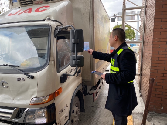 圖為工作人員向過往司機發(fā)放宣傳冊
