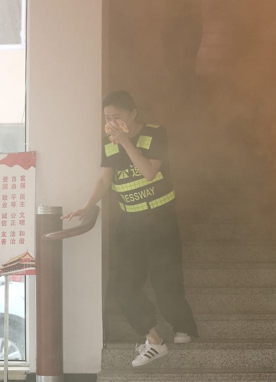 圖為火災(zāi)逃生演練現(xiàn)場