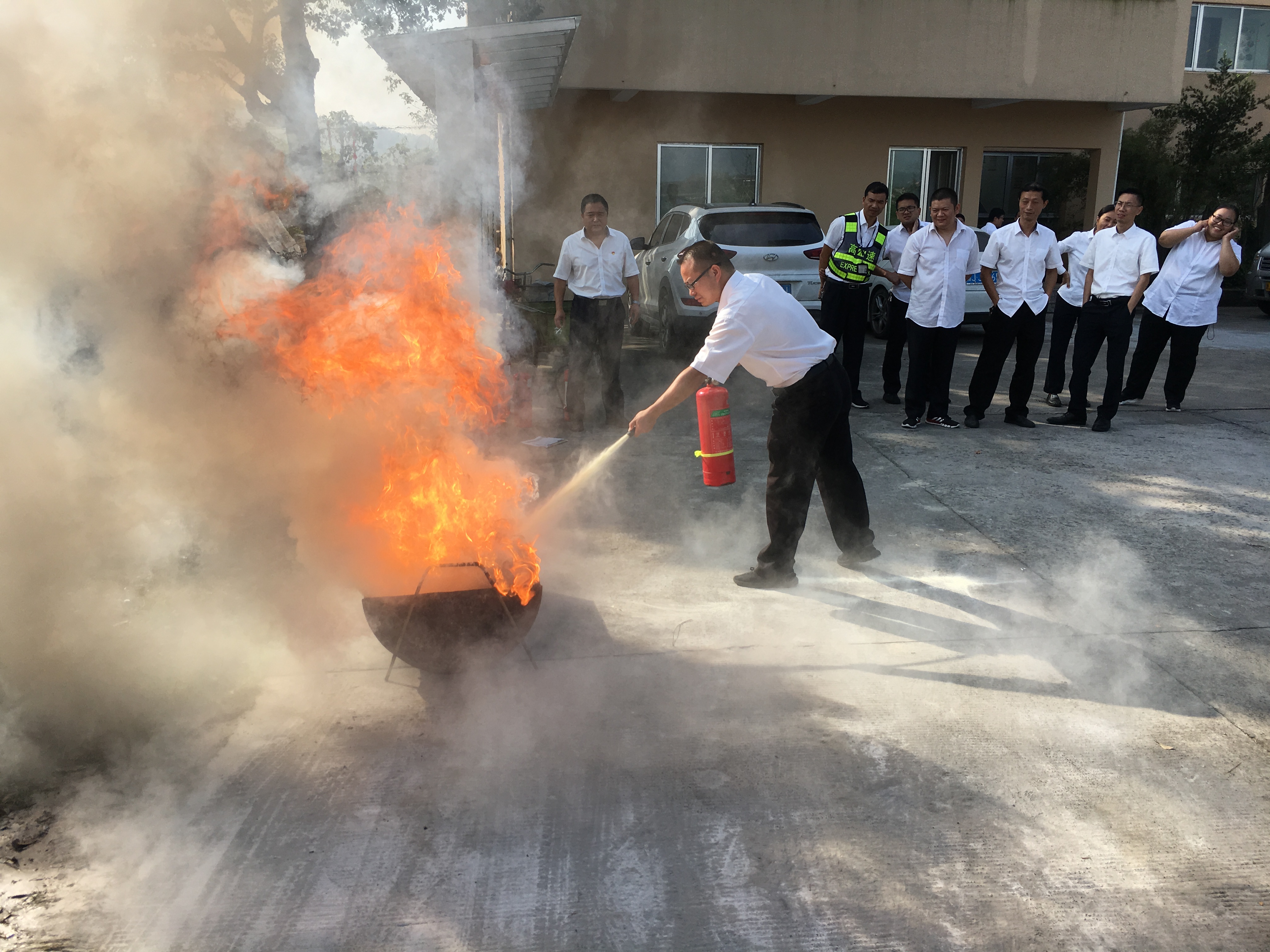 接下去的滅火演練中,班長(zhǎng)行滅火示范,參加活動(dòng)的員工逐個(gè)參與實(shí)際操作,所里的安全員在一旁進(jìn)行指導(dǎo)、糾正,保證更有效地發(fā)揮消防器材的作用。