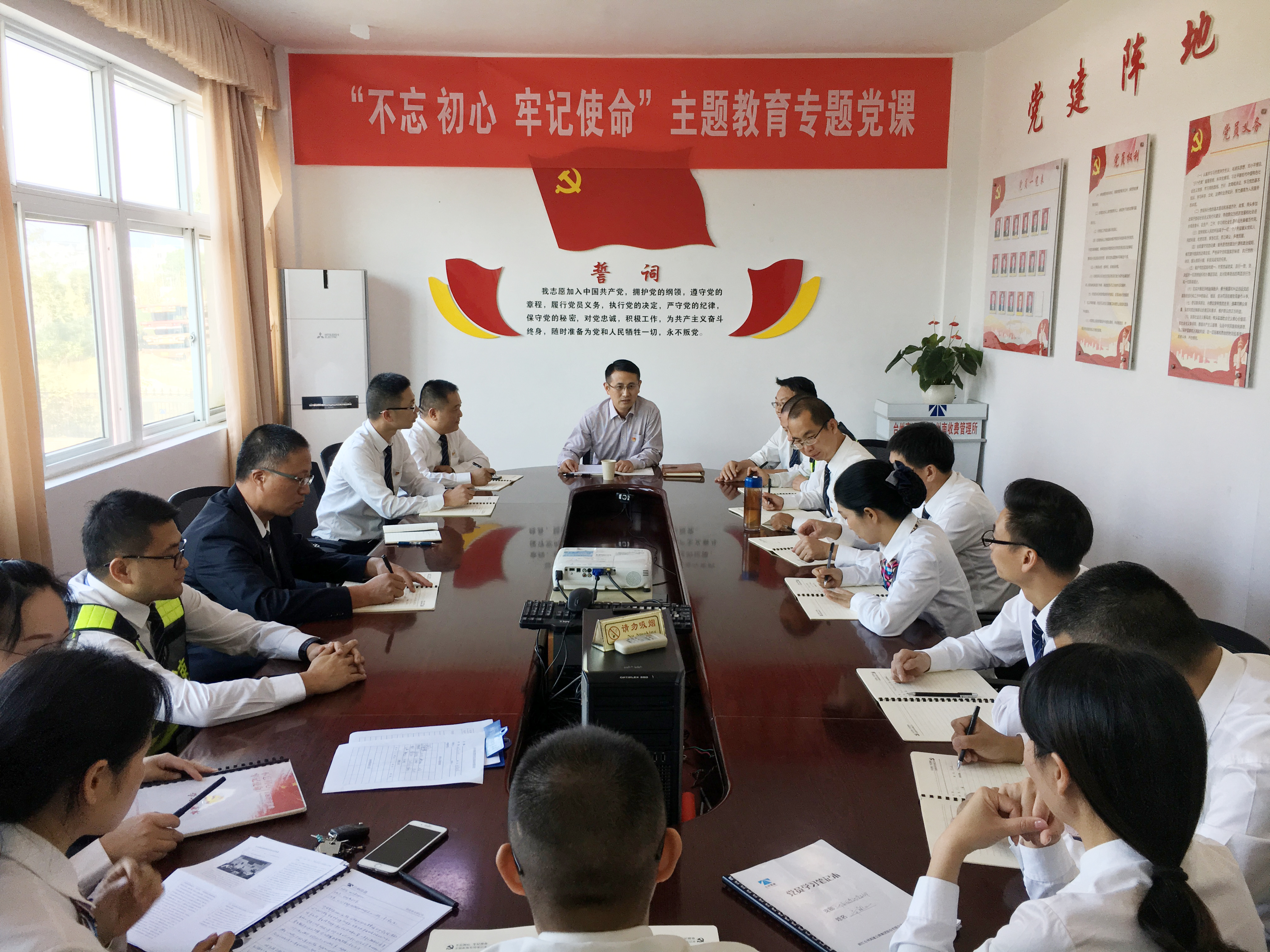 圖為黨課現(xiàn)場 王雍緊扣“我們加入高速的初心,牢記我們?yōu)楦咚偌瘓F奮斗的使命”,結(jié)合自己的學(xué)習(xí)體會,和黨員們交流了4方面的認識:不忘初心教育意義重大;理論聯(lián)系實際,學(xué)習(xí)指導(dǎo)實踐;提高站位,用高標準引領(lǐng)工作實踐;以身作則,實踐初心。 王雍強調(diào),臺州南黨支部要發(fā)揮引導(dǎo)作用,積極宣傳主題教育的重大意義和實際成效,推廣正面典型,剖析反面典型,以黨員干部為榜樣,夯實“不忘初心、牢記使命”主題教育基礎(chǔ),提升主題教育的傳播力、影響力和權(quán)威性。要將“不忘初心、牢記使命”主題教育與收費的工作實踐緊密結(jié)合,在集團黨委的領(lǐng)導(dǎo)下,在黨支部的帶領(lǐng)下,用最高標準、最嚴要求指導(dǎo)工作實踐,再續(xù)臺州南收費所的優(yōu)良作風,再創(chuàng)佳績。 本場專題黨課,進一步統(tǒng)一了黨員們的思想認識:立足崗位,有擔當,有作為,為高速事業(yè)發(fā)展作出應(yīng)有的貢獻。 夏蓮萍