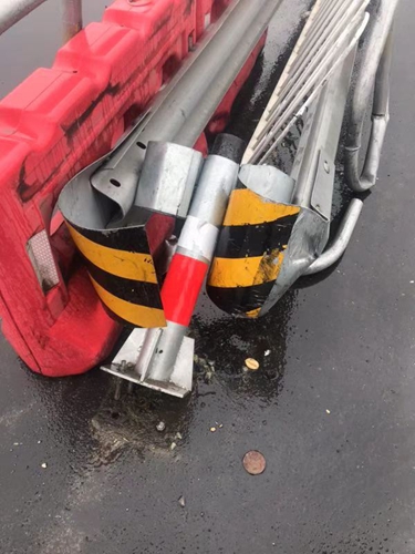 圖為被撞壞的設(shè)施 當(dāng)天10點(diǎn)10分, 該所出口外廣場,一輛5類大貨車趁著雨勢較大,竟私自將道路中間水碼移開,然后違規(guī)掉頭撞壞隔離帶及外部鐵質(zhì)柵欄后逃逸。因當(dāng)時雨勢大且該車車速較快,收費(fèi)二班當(dāng)班安全員林葉輝在追逐示警無效后立刻報告班長陳軍,通過調(diào)取監(jiān)控錄像后查到該車車牌,并迅速與指揮中心取得聯(lián)系。經(jīng)指揮中心查詢,該車為某公司名下運(yùn)輸車輛,隨即陳軍與該公司取得聯(lián)系。 經(jīng)了解,該車駕駛員因雨天行駛速度慢,怕耽誤去院橋下貨,一時沖動違規(guī)掉頭想節(jié)省時間,在撞到隔離帶后更加慌張?zhí)右荨T诤驮撥囁緳C(jī)耐心溝通后,司機(jī)表示下完貨后會立刻前來處理。 經(jīng)過近一個小時的等待,這位司機(jī)終于回到現(xiàn)場,公司理賠人員及安保人員與司機(jī)一同確認(rèn)隔離帶損壞情況,確認(rèn)無誤后該車司機(jī)繳納了賠償款后駕車離開。 在此筆者提醒各位司機(jī)朋友,切勿違規(guī)掉頭以免造成不必要的危險。 洪燈杰