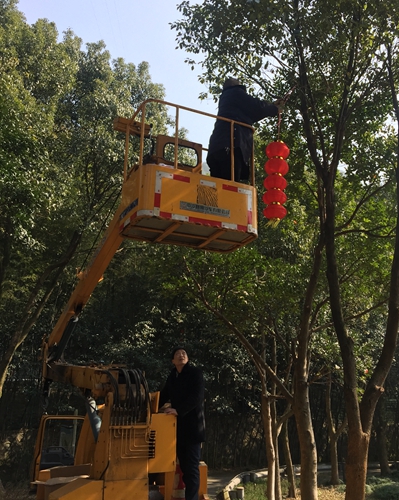 圖為黃土嶺隧道所員工合影 “往左往左,站臺(tái)再下降一點(diǎn)。”金先華麻利地操作著登高車,“爬樹高手”金美忠自然地肩負(fù)起了懸掛燈籠的任務(wù),而個(gè)子高高的廖科則負(fù)責(zé)遞燈籠,其它人員有的負(fù)責(zé)將燈籠系好鐵絲,有的負(fù)責(zé)扛梯子,有的則不時(shí)地在遠(yuǎn)點(diǎn)兒的位置仔細(xì)看燈籠掛得正不正, 兩個(gè)燈籠高度是否一致,對(duì)聯(lián)是否對(duì)齊等等。大家有說有笑,忙得不亦樂乎! 不一會(huì)兒工夫,喜慶的春聯(lián)貼起來,紅紅的燈籠串掛起,管理所員工在一片喜氣的歡樂氛圍中共同期待著的新年的到來! 林 玲