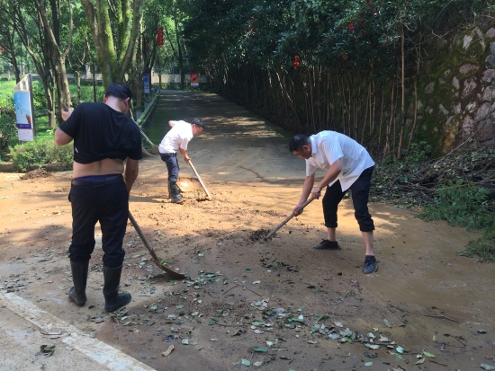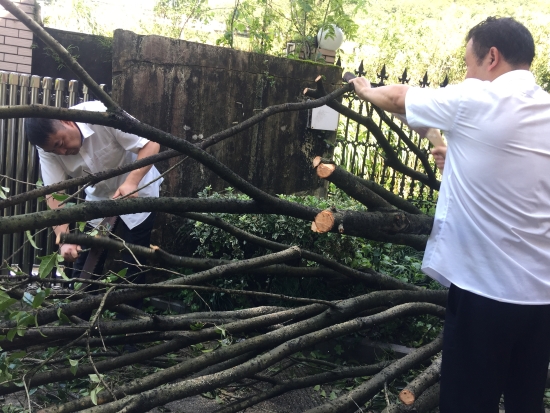 臺(tái)風(fēng)“利奇馬”肆虐而過(guò),雖然黃土嶺隧道所提前做好各項(xiàng)防臺(tái)措施,但是干凈整潔的管理所在這場(chǎng)天災(zāi)中還是遭受到了破壞,樹木倒折、落葉、樹枝滿地,淤泥坑洼,現(xiàn)場(chǎng)一片狼藉。8月12日上午剛剛恢復(fù)正常供水的黃土嶺隧道所,全體人員立馬投入到重建家園中,打掃衛(wèi)生,原地種回倒伏的樹木,清理淤泥……徹底消除臺(tái)風(fēng)過(guò)后留下的殘敗痕跡。