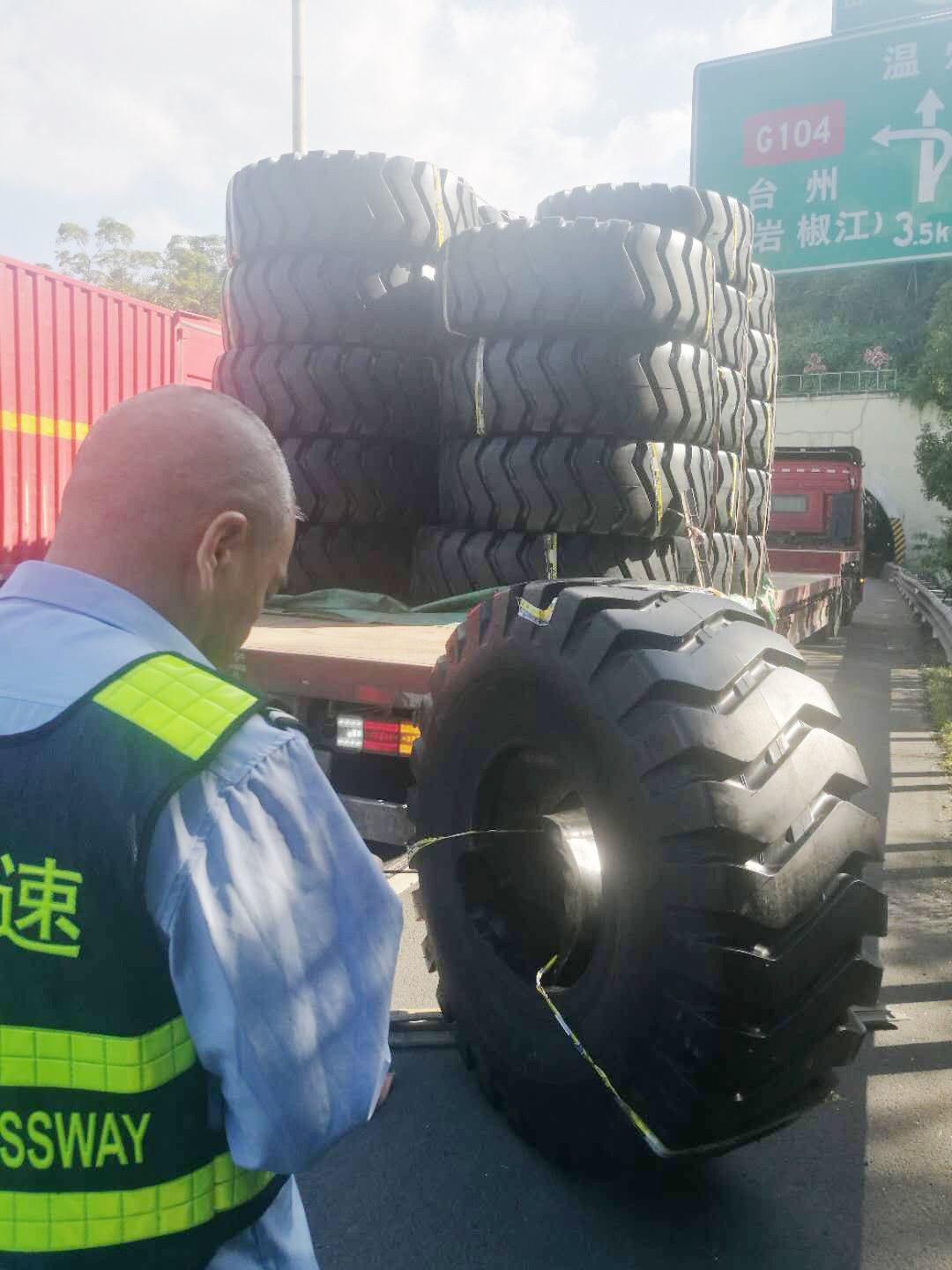 執(zhí)勤隊(duì)接警后立即趕往事故地點(diǎn),一輛運(yùn)載輪胎的貨車停靠在主車道,其中一個(gè)巨型輪胎滑落到硬路肩上,致使后方車輛紛紛避讓。為及時(shí)消除險(xiǎn)情,執(zhí)勤隊(duì)快速在現(xiàn)場(chǎng)做好安全警戒工作,同時(shí)將現(xiàn)場(chǎng)情況反饋給監(jiān)控中心。由于貨車綁繩索松動(dòng),重達(dá)300多斤的輪胎脫落在地,隨后執(zhí)勤隊(duì)協(xié)同施救中心、駕駛?cè)?/span>員合力將掉落的輪胎先拖至車旁,經(jīng)過(guò)長(zhǎng)達(dá)半個(gè)小時(shí)的搶險(xiǎn),跌落的貨物終于完好無(wú)缺地回到貨車上,道路恢復(fù)暢通。 筆者溫馨提醒:在高速公路行駛過(guò)程中,駕駛?cè)藨?yīng)注意將車上的貨物固定好,途中要隨時(shí)注意貨物及捆綁繩索是否松動(dòng)。無(wú)論是車輛撒落物還是人為拋灑物,都會(huì)給道路安全暢通埋下了重大隱患! 林玲