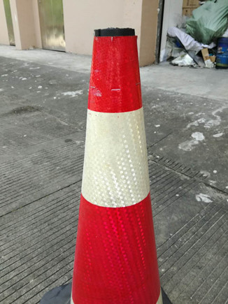 大溪嶺隧道所改良“小紅帽” 大溪嶺隧道所執(zhí)勤隊遇隧道內(nèi)車輛事故、拋錨等會出警預警,處理險情時則會在車輛后方150米處擺放反光警示椎(俗稱小紅帽),它是臨時分隔車流、引導交通,指引車輛繞過危險路段,保護現(xiàn)場設施和人員安全,起隔離警示作用。小紅帽的頂端有層反光膜,不用時以套疊式放置,使用時再逐個抽拔出來,因經(jīng)常抽拔,表層反光膜與桶體摩擦而導致反光膜脫落,一陣風就會讓反光膜成碎片狀滿天飛舞,給隧道預警工作帶來極大的不安全因素,但若棄用這些沒有反光膜的小紅帽,則又很浪費。