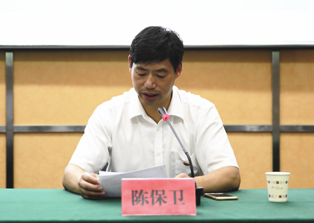 圖為公司副總經理陳保衛(wèi)主持會議