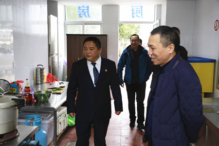 圖為集團(tuán)副董事長、總經(jīng)理張建平檢查臺州南收費(fèi)所食堂