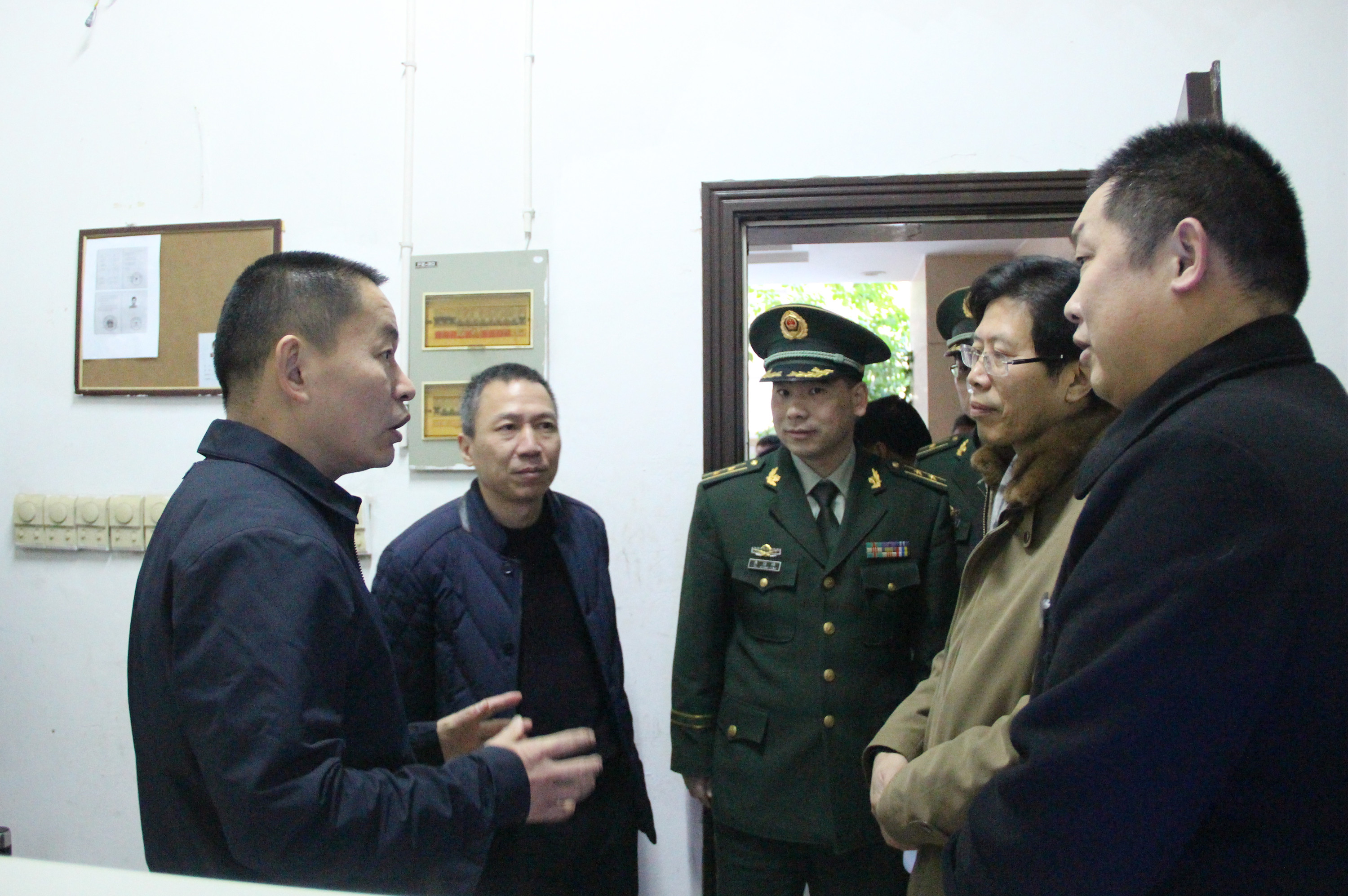 圖為副市長(zhǎng)、公安局長(zhǎng)伍建利一行在消控室檢查
