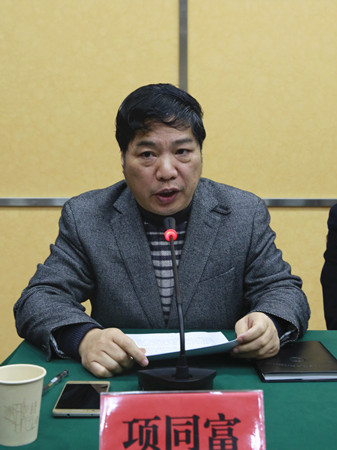 圖為公司安全總監(jiān)項(xiàng)同富總結(jié)2017年綜治安全生產(chǎn)工作和部署2018年安全生產(chǎn)工作