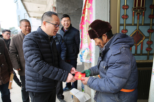 圖為集團(tuán)副總經(jīng)理羅小將慰問村里困難群眾