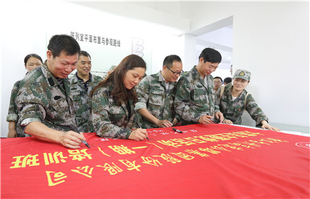 圖為集團領(lǐng)導在活動橫幅上簽字留念