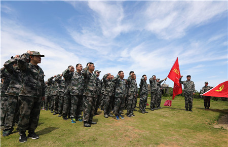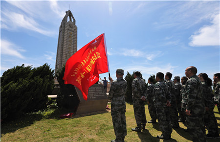 圖為黨員參觀大陳島墾荒紀念館 “讓我們重溫入黨誓詞,牢記黨員使命。”當鮮紅的黨旗在墾荒紀念碑下鋪開的時候,大家的思緒拉回現(xiàn)實。激情燃燒的歲月是歷史,從歷史中汲取力量,不忘初心,弘揚和傳承艱苦創(chuàng)業(yè)精神,鍥而不舍地克服集團發(fā)展中的難關(guān)難題,才是此行活動真正的意義所在。“我志愿加入中國共產(chǎn)黨......”面向黨旗,大家齊齊舉起右手,跟隨集團黨委委員陳保衛(wèi)一起大聲宣誓,墾荒碑下回聲嘹亮,一句句錚錚誓言體現(xiàn)出黨員干部無比堅定的信念。
