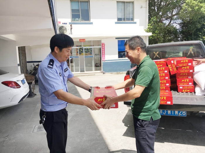 與此同時,集團總工程師江輝帶領(lǐng)工程部及收費所相關(guān)人員到院橋派出所和交警隊開展“送清涼”活動。江輝代表臺州高速集團對當?shù)嘏沙鏊徒痪牭穆穆毐M責(zé)、通力協(xié)作表示衷心感謝,并叮囑他們在高溫天氣要做好防暑降溫工作。