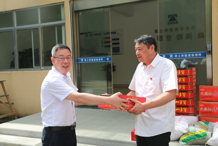 陳文波一行首先來到臺州高速公路交警總隊臺州支隊和高速路政的駐地,向他們送上了消暑物資,對他們一直以來有力維護高速公路秩序,保障本路段有序運營及高溫下堅守一線工作表示慰問和感謝,也請他們繼續(xù)支持公司工作,確保高速公路安全暢通。