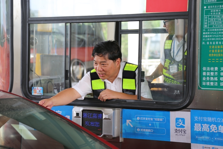 而在對(duì)面發(fā)卡的安全總監(jiān)項(xiàng)同富正襟危坐,等待著車子的駛?cè)耄?/span>“記住動(dòng)作就忘記微笑,笑起來又忘記要說什么......真有點(diǎn)手忙腳亂的,做好收費(fèi)員,不容易。”