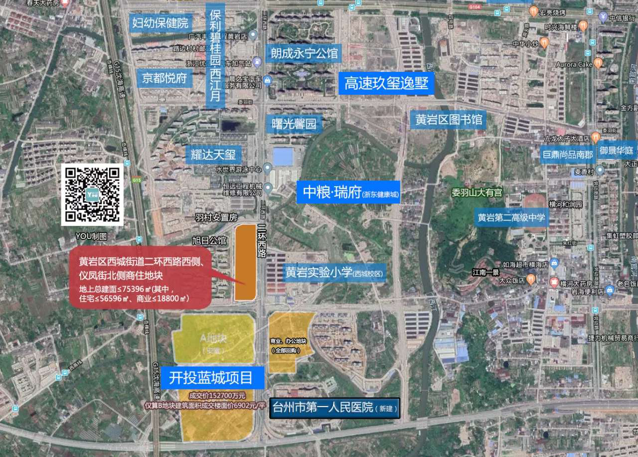 該地塊位于黃巖區(qū)西城街道二環(huán)西路西側(cè)、儀鳳街北側(cè),耀達天璽南側(cè)。地塊出讓面積3.7698公頃,容積率1.0~2.0,可建地上總建筑面積75396㎡。地塊位于黃巖委羽山板塊,北臨黃巖老城中心,未來將以浙東健康城為重點,建成集道學(xué)文化、醫(yī)療、康養(yǎng)、商業(yè)、生活及休閑于一體的綜合性城市發(fā)展片區(qū)。距離內(nèi)環(huán)線入口不超過2公里,周邊分布著實驗小學(xué)西城校區(qū)、文化館及臺州市第一人民醫(yī)院等配套設(shè)施,教育、醫(yī)療資源非常豐富,宜居宜業(yè)。
