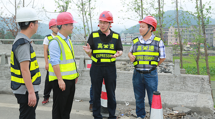 陳文波檢查溫嶺西收費(fèi)站匝道橋梁維修工程 7月9日上午,臺(tái)州高速集團(tuán)黨委書記、董事長(zhǎng)、總經(jīng)理陳文波來到溫嶺西收費(fèi)站匝道橋梁維修工程現(xiàn)場(chǎng),檢查工程施工情況。