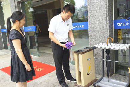 圖為物業(yè)公司工作人員幫助來客折傘 為提高物業(yè)管理質(zhì)量,營造安全、舒心的大樓環(huán)境,前段時間,辦公室根據(jù)大樓實際情況和業(yè)主需求,精心制定更換物業(yè)方案,擴大選擇物業(yè)公司至全省范圍,深入調(diào)查了解有選擇意向的物業(yè)公司,并通過現(xiàn)場考察以及經(jīng)由天和大廈業(yè)委會開會決定,最終敲定浙師大印象物業(yè)管理有限公司負責本大樓物業(yè)管理。 5月1日,該物業(yè)公司正式入駐大樓,開啟了新物業(yè)管理改革風潮,在服務質(zhì)量、人員形象、崗位職責、保潔等方面進行了全面整改。對比原先的物業(yè)公司,他們不僅增加人員配置,還提高上崗人員形象、素質(zhì)要求,整體改善大樓一些臟、亂的環(huán)境,設立服務中心前臺、統(tǒng)一規(guī)范業(yè)主廣告位、在大廳放置沙發(fā)以接待訪客等,尤其在大樓正門入口一側(cè)設立形象崗,同時根據(jù)大樓用戶需要,分別在大樓A、B幢放置快遞柜,方便用戶取用物品。為了大樓安全,該物業(yè)公司還摸底各樓層工作人員名單、聯(lián)系方式、具體辦公地點,以防陌生人員無故闖入大樓。 據(jù)該物業(yè)公司副總經(jīng)理霍正佩介紹,其公司要求形象崗上的工作人員要規(guī)范使用迎賓用語,同時服務中心前臺客服人員上班時間延長至晚8點,以更好地滿足部分業(yè)主需求。 在此期間,公司辦公室一直持續(xù)跟進物業(yè)交接、整改工作,共同完善物業(yè)管理,創(chuàng)造大樓新形象。在新物業(yè)入駐第二天,公司安保部便對安全生產(chǎn)工作情況進行了全面檢查,并提出整改建議。 陳林偉