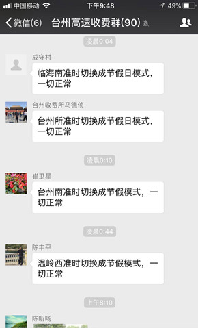 圖為收費模式切換時的微信工作交流群 加強宣傳,主動引車流。集團網(wǎng)站、微信公眾號等媒體提前發(fā)布通行提示,解釋國家免費通行政策,引導(dǎo)司乘人員錯峰出行。在各收費所路段進口附近重要岔口提前布置臨時限行指示牌,提醒過往貨車避開高峰時段。高速主線上利用電子顯示屏、可變情報板等手段及時通報路況,引導(dǎo)車輛通行。