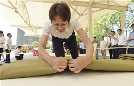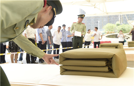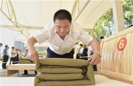 這是集團(tuán)2018年技能大比武中內(nèi)務(wù)項(xiàng)目比賽中的一個(gè)場景。此次內(nèi)務(wù)比賽由公司大樓、所、中心、子公司共挑出33名代表參加,比賽特邀黃巖消防大隊(duì)兩位教官擔(dān)任裁判。