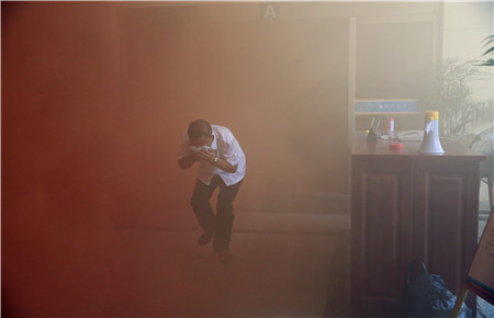 為了模擬的真實性,在未告知的情況下,兩條疏散樓梯中的一條被放置了煙霧彈,模擬通道被堵的情況,撤離人員在引導(dǎo)員的指引下紛紛從另一條安全通道撤離。隨后在一樓大廳還有一項考驗在等著他們,模擬煙霧已經(jīng)蔓延到一層,兩個煙霧彈滾滾向外冒著濃煙,刺鼻的氣味四處飄散,整個一樓大廳被籠罩在一片黃色煙霧中,能見度極低。這時疏散引導(dǎo)員攜帶的手電筒發(fā)揮了作用,在一片迷霧中,明亮的白光成為指引所有逃生人員的一道“生命之光”。五分鐘內(nèi),最高的25層人員也已經(jīng)撤離現(xiàn)場,在大樓西側(cè)指定集合點集合,各樓層開始清點人員并匯報情況。 疏散演練前,演練組還對大樓煙感和噴淋系統(tǒng)進行了多點實戰(zhàn)抽驗,通過破壞性檢測檢驗煙感和噴淋系統(tǒng)正常工作能力。此次活動在實戰(zhàn)中檢驗了大樓疏散引導(dǎo)員和物業(yè)消防員履職能力及大樓員工的應(yīng)急逃生能力,強化了員工的安全意識,提高了抗擊突發(fā)事件的應(yīng)變能力和防范自救能力,演練取得圓滿成功。