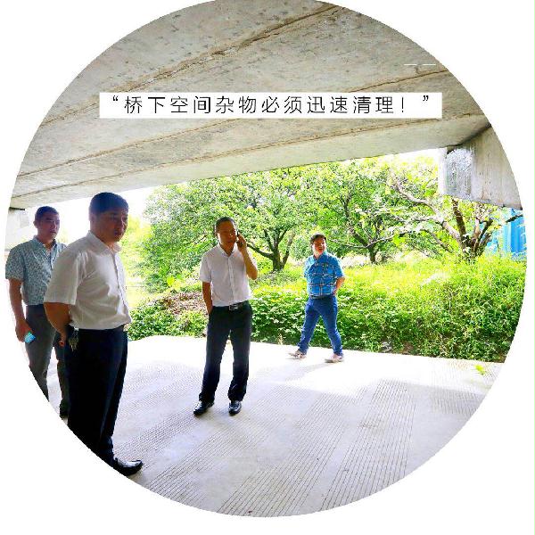 下洋塢橋,看到當(dāng)?shù)匕傩赵跇蛳驴臻g新堆砌的雜物,張建平馬上電話給當(dāng)?shù)卮彘L(zhǎng),要求立即處理。