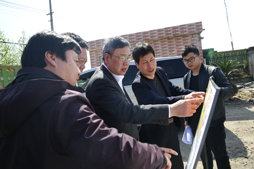 圖為公司領導陳文波在水花村考察停車區(qū)地塊