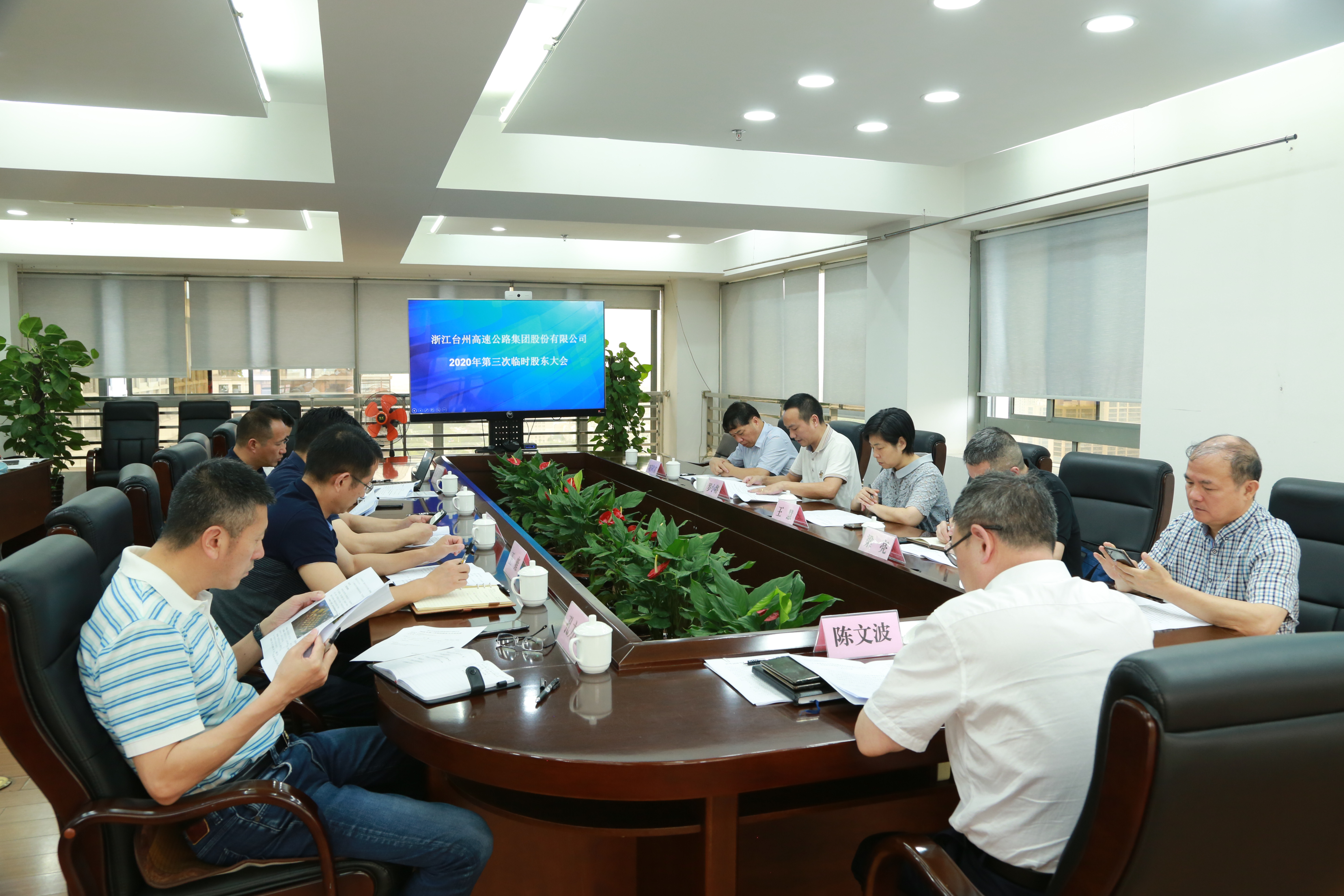 圖為陳文波主持會議 大會由公司黨委書記、董事長、總經(jīng)理陳文波主持,公司董事、監(jiān)事和高管人員出席大會。 大會經(jīng)鼓掌表決推舉了監(jiān)票人、計票人,經(jīng)記名投票表決通過《關于高速房產(chǎn)公司參與黃巖區(qū)東城街道印山路西側、二環(huán)南路北側地塊(臺土告字[2020]028號)競拍的議案》。本次股東大會各項議案均獲通過,同意各項議案的表決股數(shù)占出席會議所有股東所持表決權的100%。