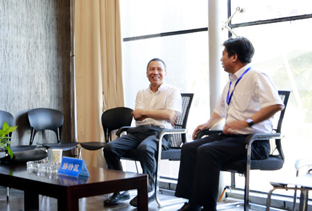 圖為集團(tuán)副董事長(zhǎng)、總經(jīng)理張建平向股權(quán)溫嶺收購(gòu)點(diǎn)工作人員問候