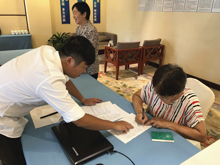 圖為股東在認真簽訂股權轉讓協(xié)議