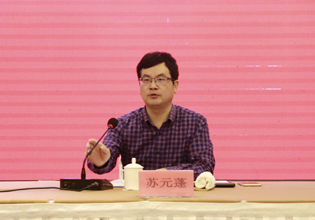 圖為市政府副秘書(shū)長(zhǎng)蘇元蓬主持會(huì)議