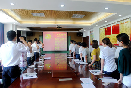 圖為全體黨員重溫入黨誓詞 會議第一項內(nèi)容由該所黨支部書記王小勇帶領(lǐng)全體黨員重溫入黨誓詞,王小勇要求各位黨員牢記宗旨,做一名合格黨員。接下來全體黨員觀看《廖俊波:永遠(yuǎn)的“樵夫”——一名共產(chǎn)黨員的樂與愛》視頻,學(xué)習(xí)市委書記王昌榮在全市領(lǐng)導(dǎo)干部會議上的講話精神等。大家結(jié)合高速精神大討論,對照先進(jìn)典型和“四講四有”合格黨員標(biāo)準(zhǔn),聯(lián)系個人思想和工作實際,認(rèn)真開展批評與自我批評,查找不足,剖析原因,明確方向,并提出改進(jìn)措施。 會后,王小勇強(qiáng)調(diào),各位黨員要做到對黨忠誠,個人服從組織,樹立理想信念,強(qiáng)化黨員意識,做好本職工作。 鄭瑛芝